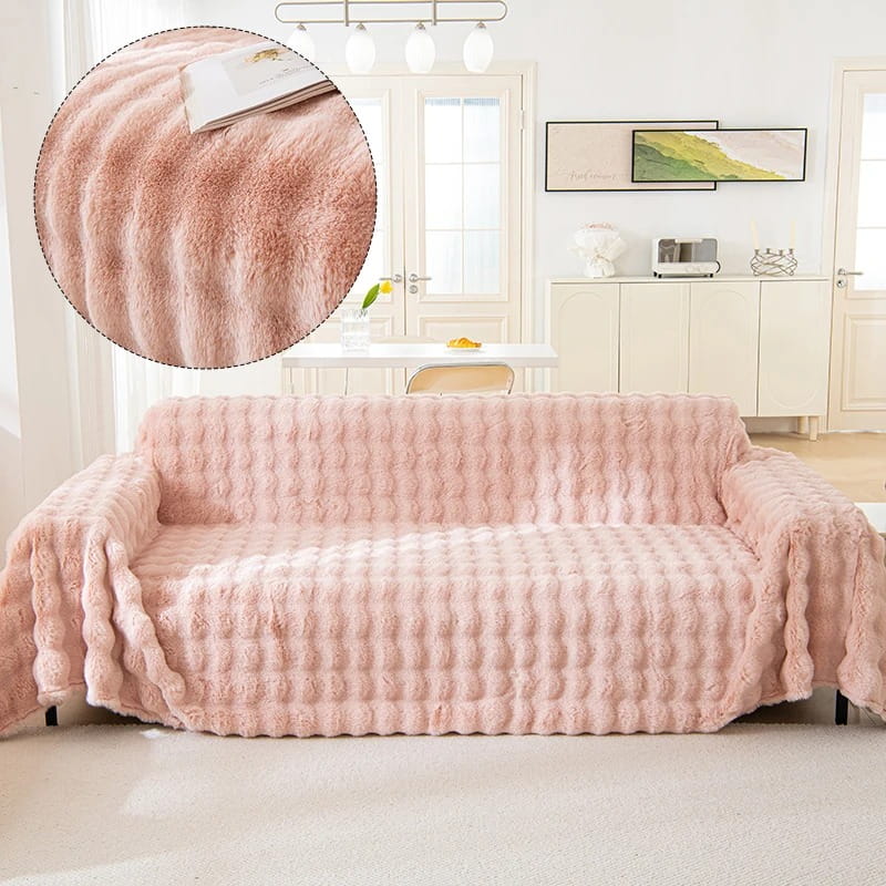 Pluszowa narzuta na kanapę w ciekawym kolorze