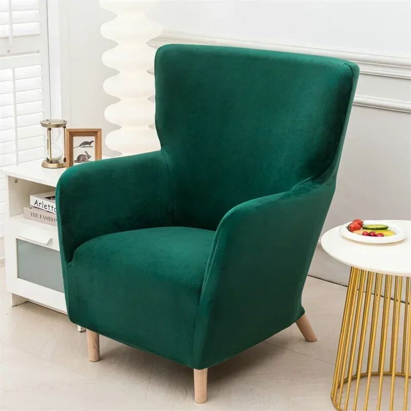 Aksamitny pokrowiec na fotel uszak IKEA OSKARSHAMN - Butelkowa Zieleń