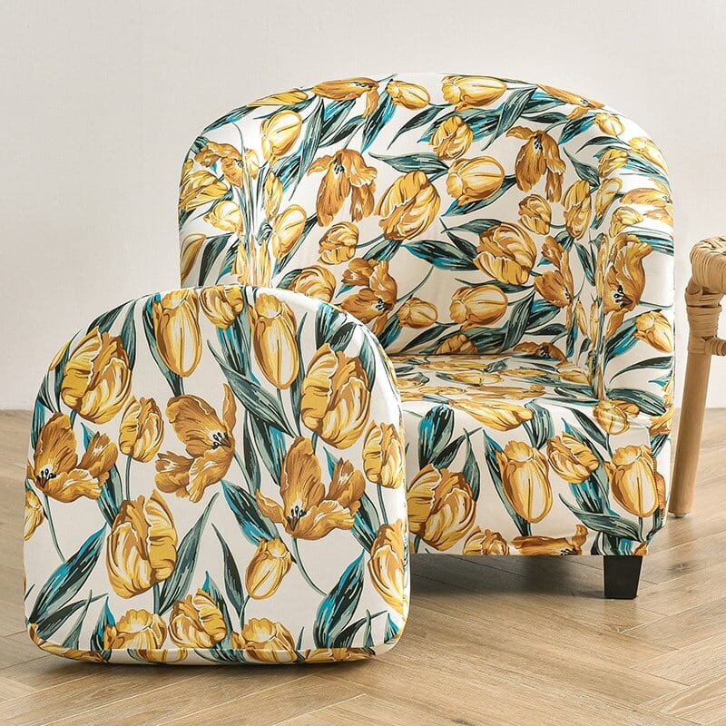 POKROWIEC NA FOTEL KLUBOWY - ZŁOCISTE KWIATY