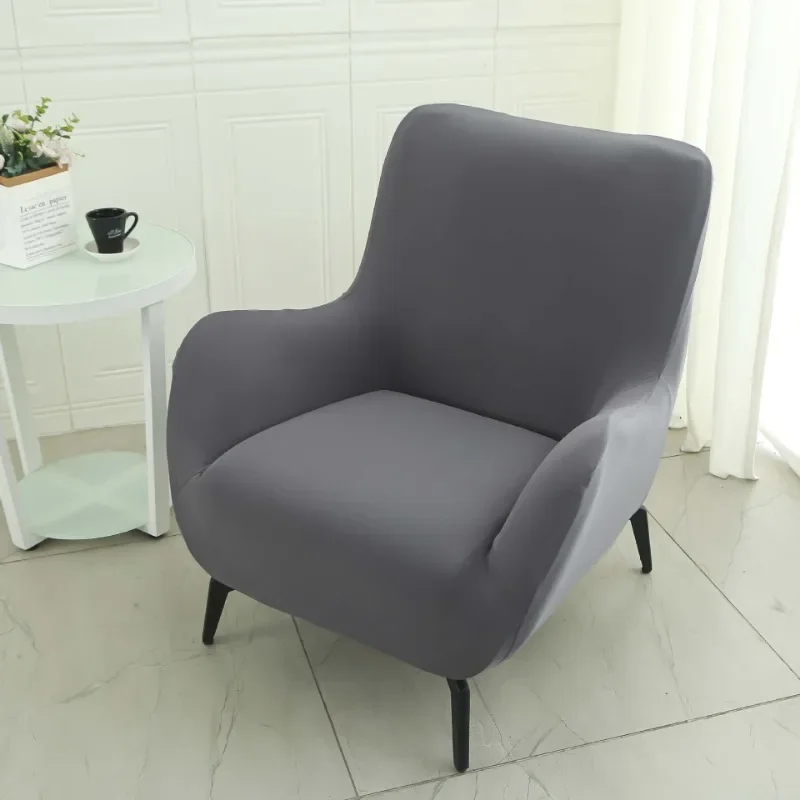 POKROWIEC NA FOTEL Z USZAMI - GŁADKI - Jasnoszary