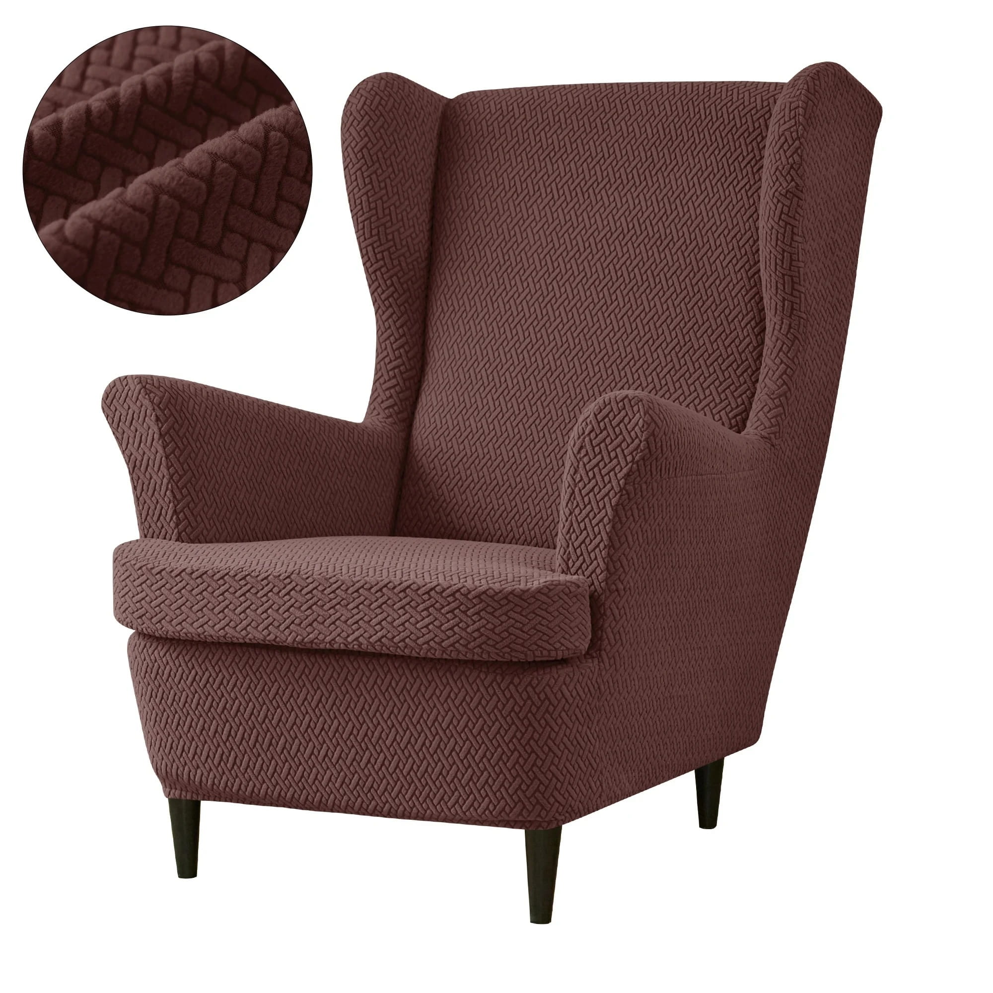 POKROWIEC NA FOTEL USZAK - ŻAKARDOWY - Chevron - Coffee