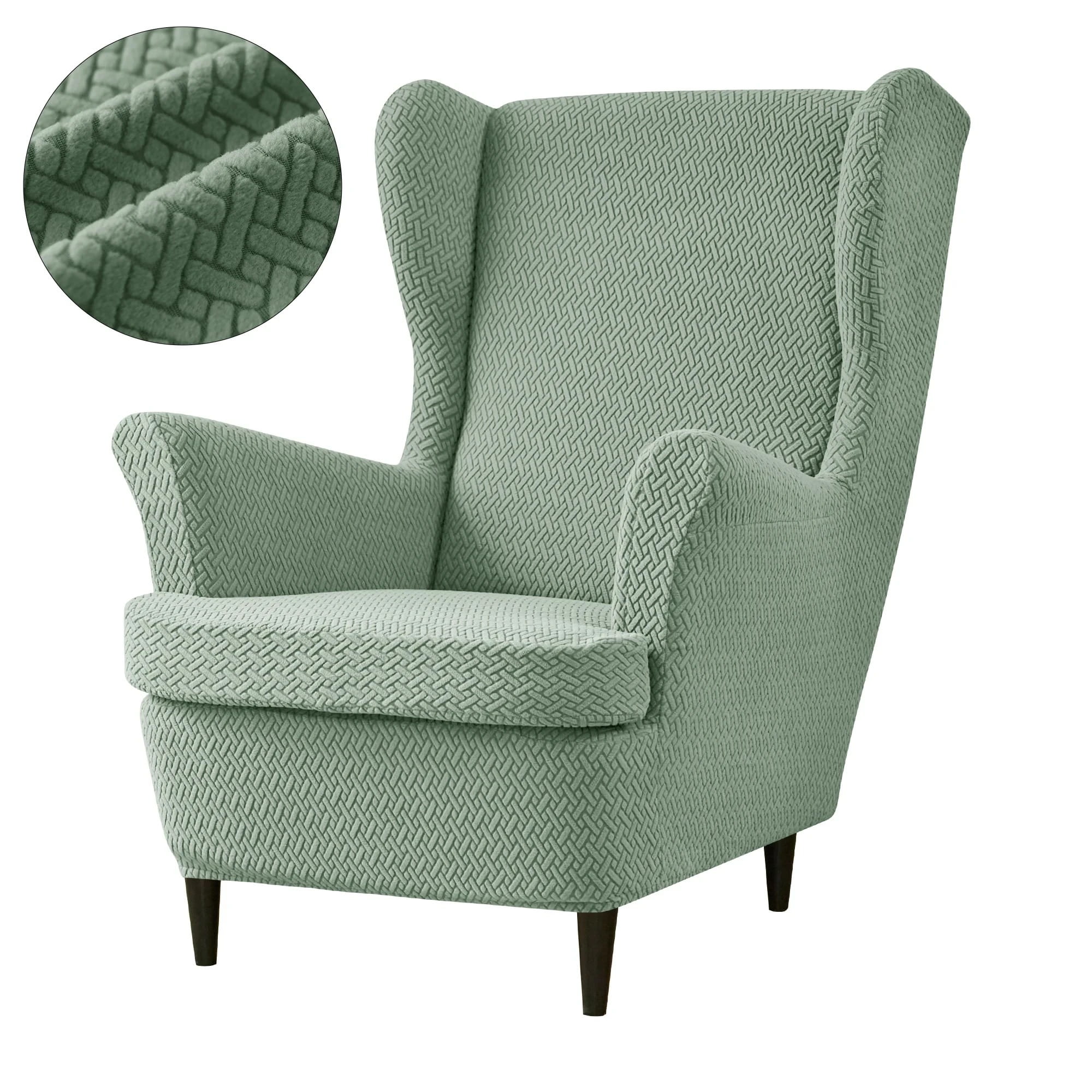 POKROWIEC NA FOTEL USZAK - ŻAKARDOWY - Chevron - Matcha
