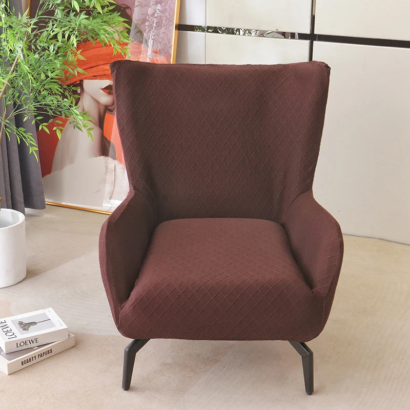 POKROWIEC NA FOTEL Z USZAMI - ŻAKARDOWY - ROMB - Kawowy