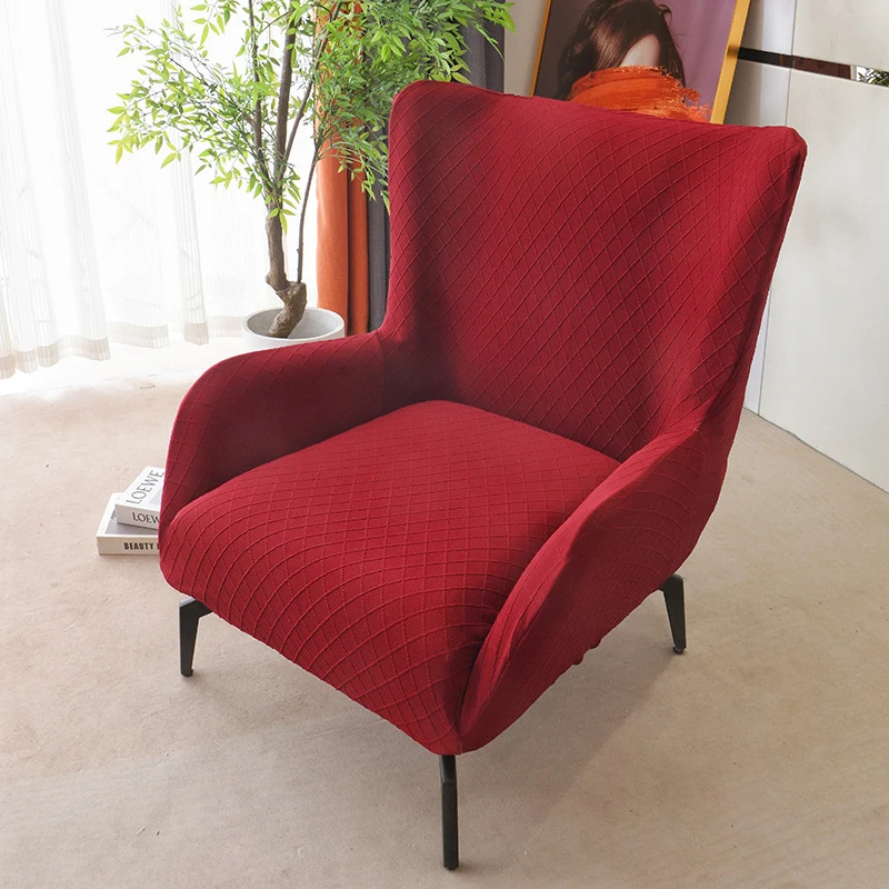 POKROWIEC NA FOTEL Z USZAMI - ŻAKARDOWY - ROMB - Różowy