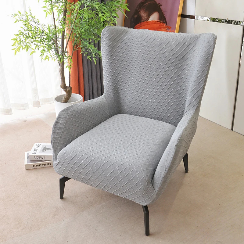POKROWIEC NA FOTEL Z USZAMI - ŻAKARDOWY - ROMB - Szałwiowy