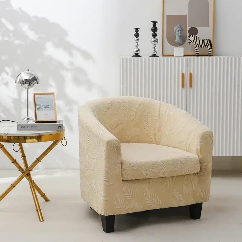 Żakardowy pokrowiec na fotel klubowy w pięknym motywie liści