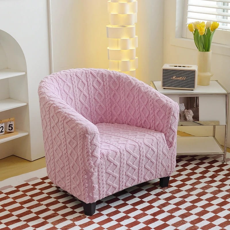 Żakardowy pokrowiec na fotel klubowy w pięknym motywie warkocza