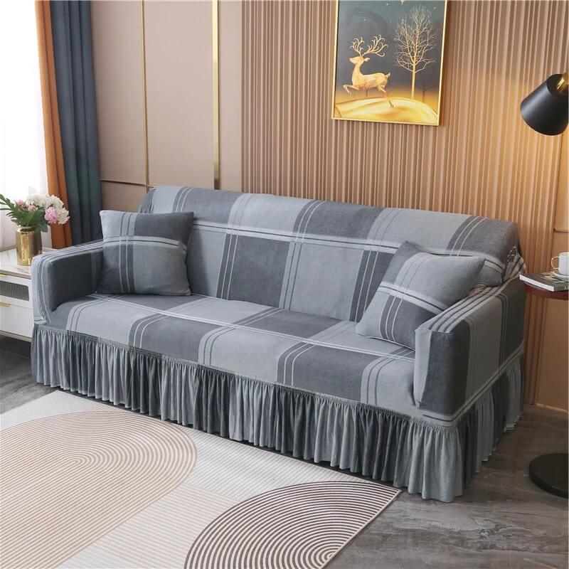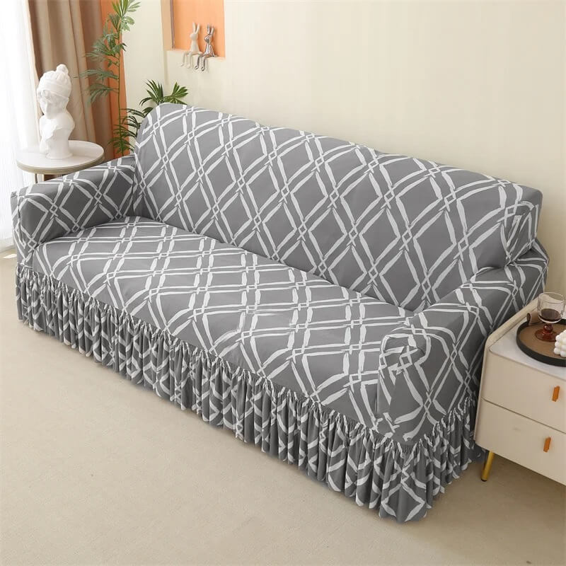 Odnów kanapę - sofę nakładając nasz pokrowiec na kanapę z falbaną