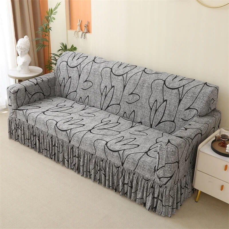 Odnów kanapę - sofę nakładając nasz pokrowiec na kanapę z falbaną