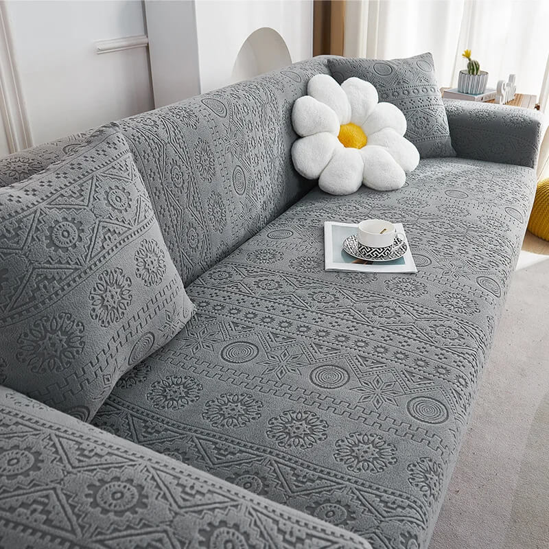 ŻAKARDOWY POKROWIEC NA KANAPĘ - SOFĘ - enigmatico - Biały