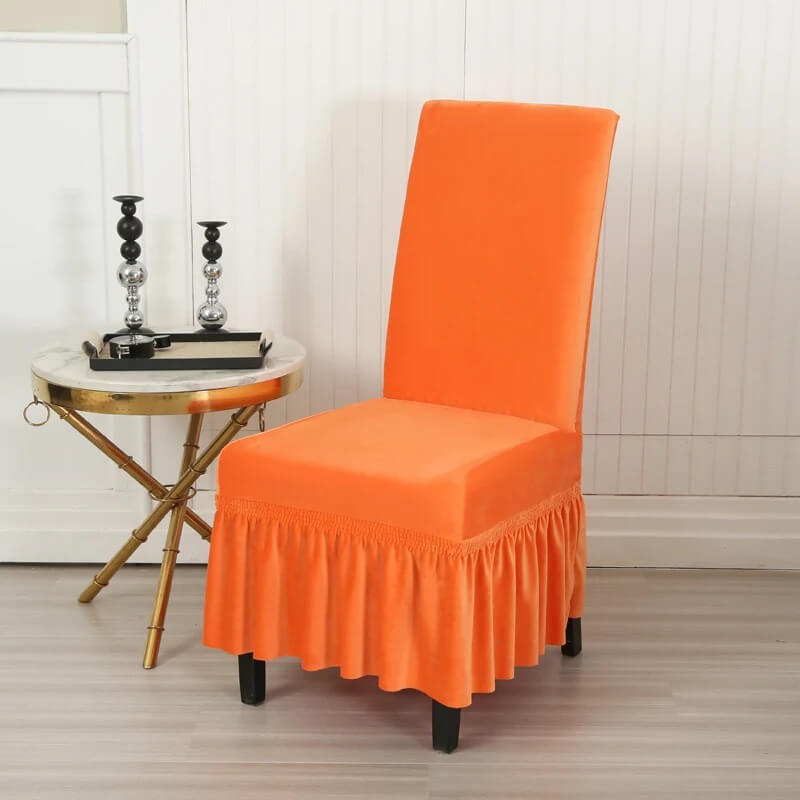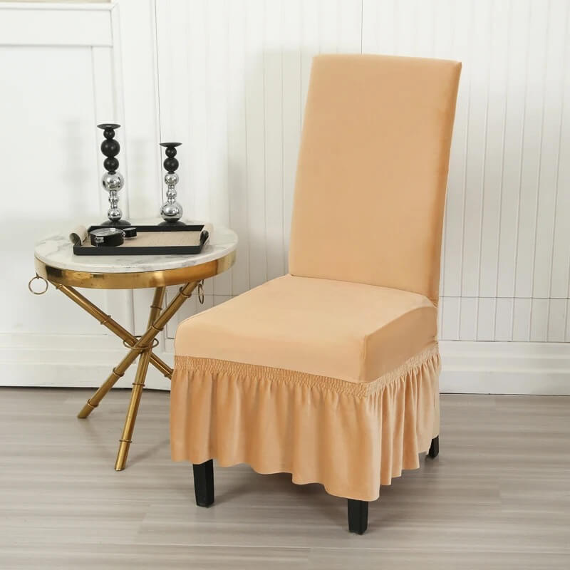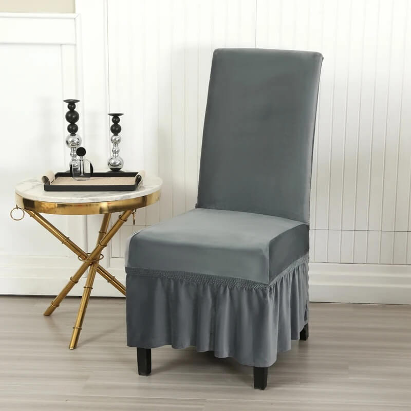 Aksamitny pokrowiec na krzesło z falbaną - Bistre