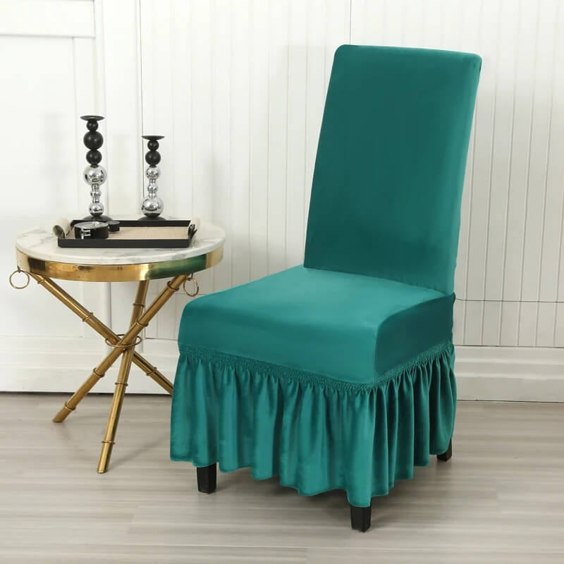 Aksamitny pokrowiec na krzesło z falbaną