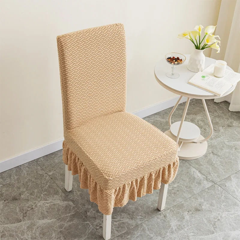 Żakardowy pokrowiec na krzesło z falbaną - chevron