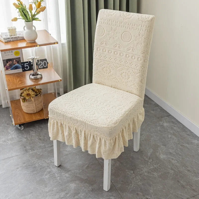 Żakardowy pokrowiec na krzesło z falbaną - enigmatico