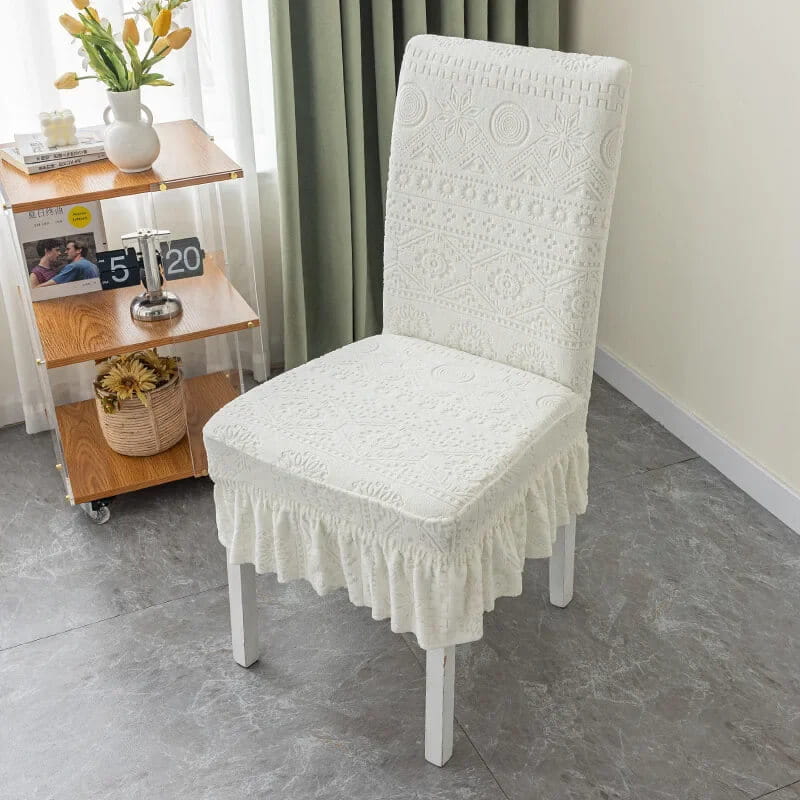 Żakardowy pokrowiec na krzesło z falbaną - enigmatico