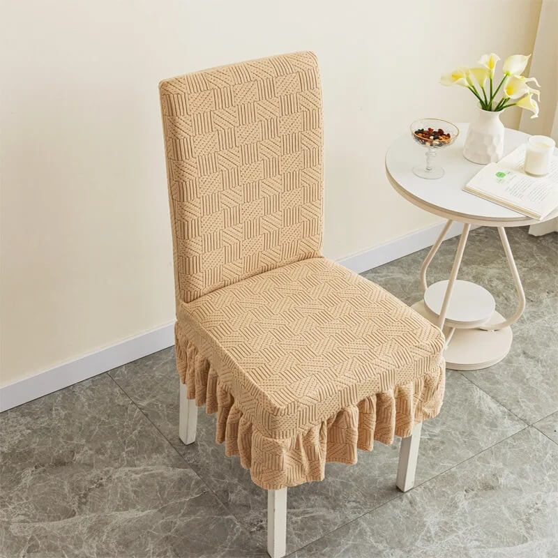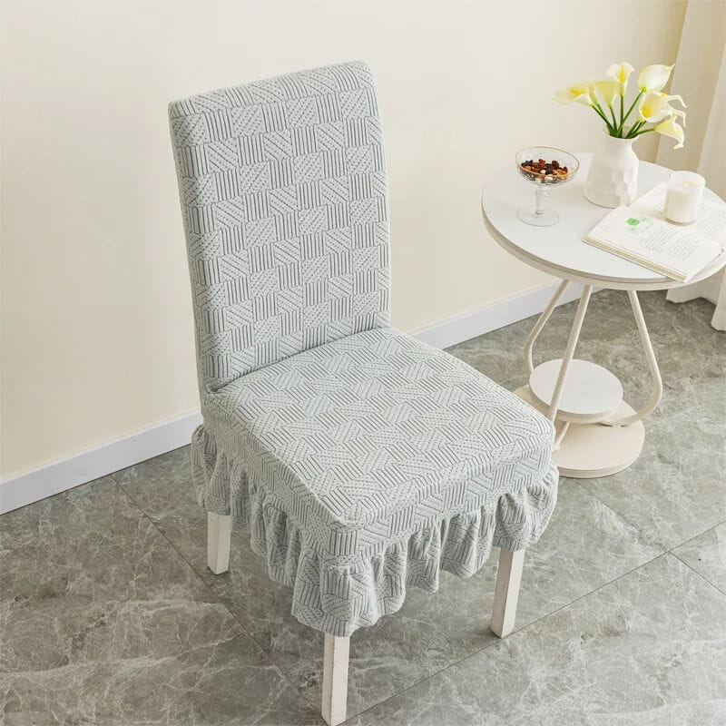 Żakardowy pokrowiec na krzesło z falbaną - Geomesh - Ciemnoszary