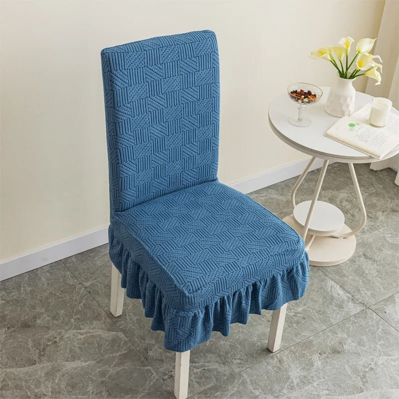 Żakardowy pokrowiec na krzesło z falbaną - Geomesh - Niebieski