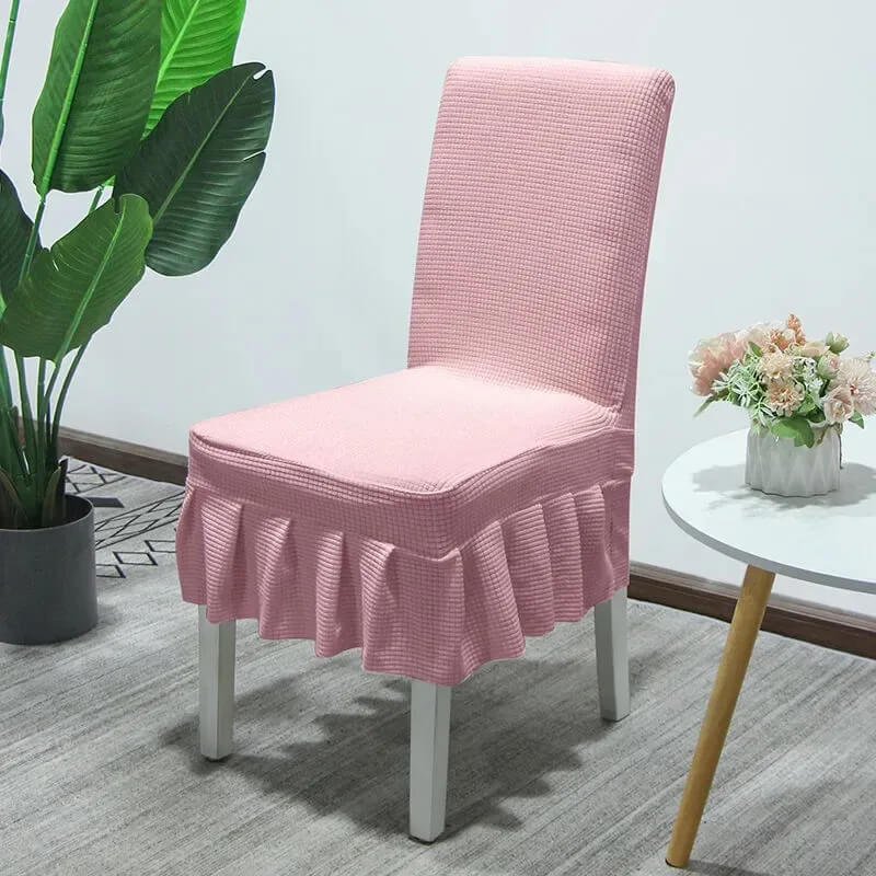 Żakardowy pokrowiec na krzesło z falbaną - kratka