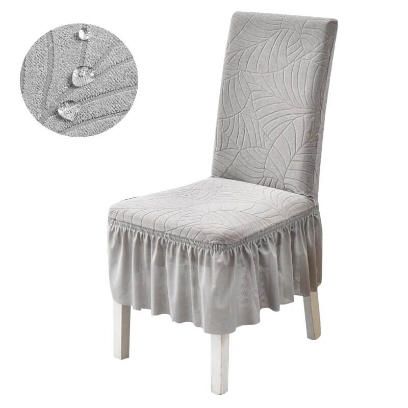 Żakardowy pokrowiec na krzesło z falbaną - LIŚCIE - Ciemnoszary