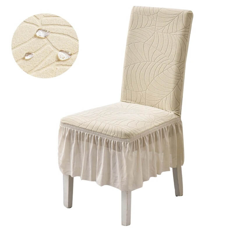 Żakardowy pokrowiec na krzesło z falbaną - LIŚCIE - Zielony