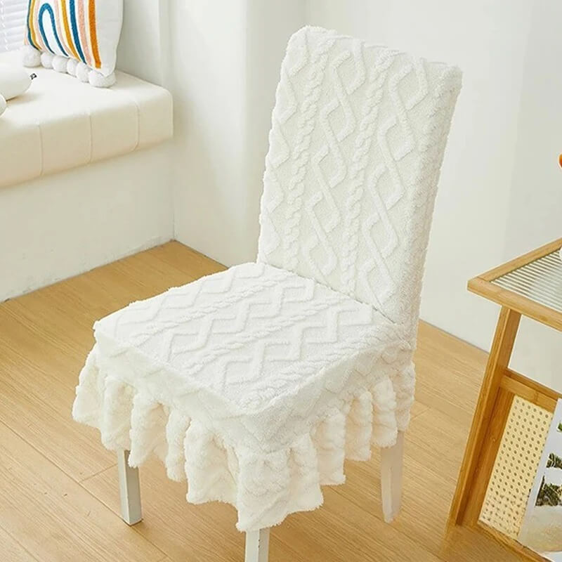Żakardowy pokrowiec na krzesło z falbaną - Warkocz