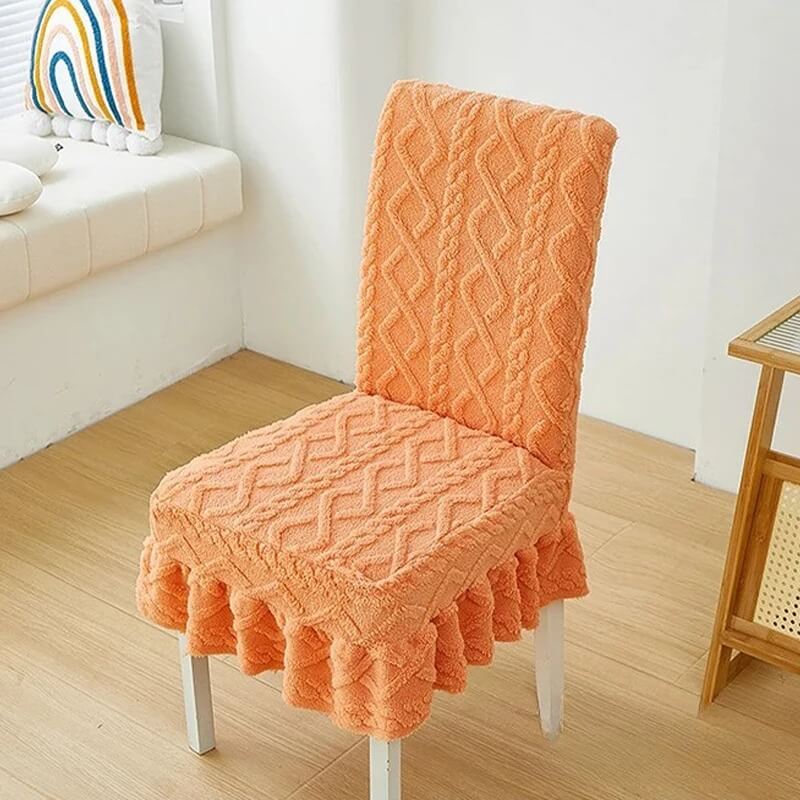 Żakardowy pokrowiec na krzesło z falbaną - Warkocz - Pomarańczowy