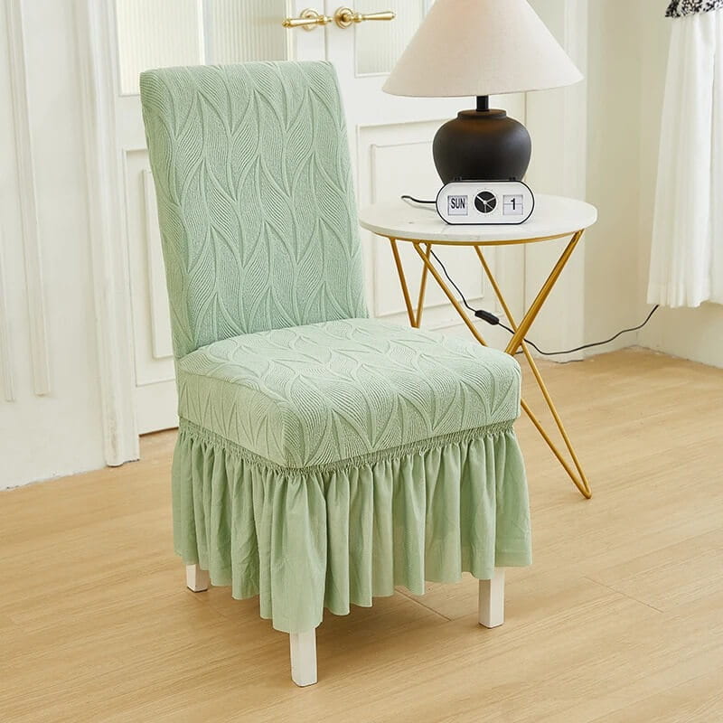 Żakardowy pokrowiec na krzesło z falbaną