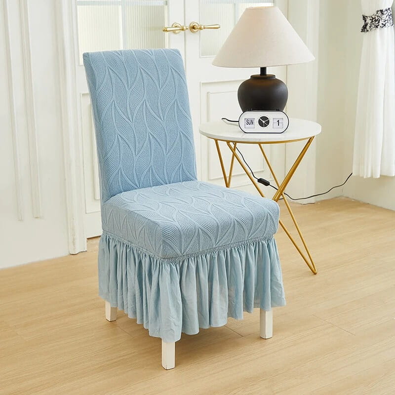 Żakardowy pokrowiec na krzesło z falbaną