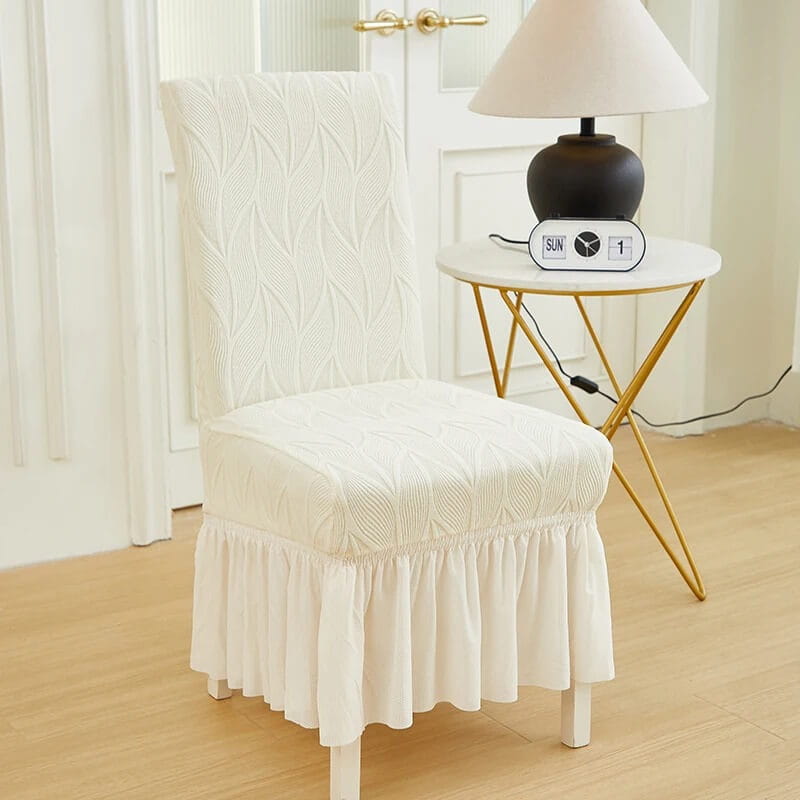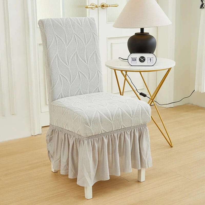 Żakardowy pokrowiec na krzesło z falbaną