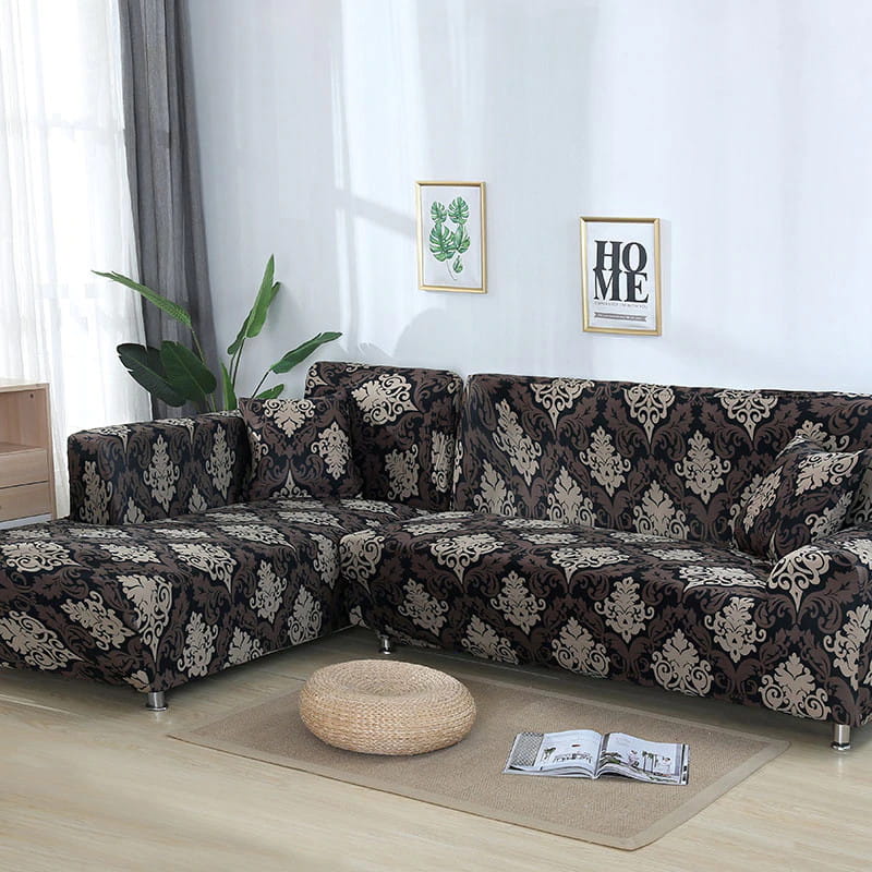 Komplet składa się z 2 sztuk pokrowców na sofę w kształcie litery L.