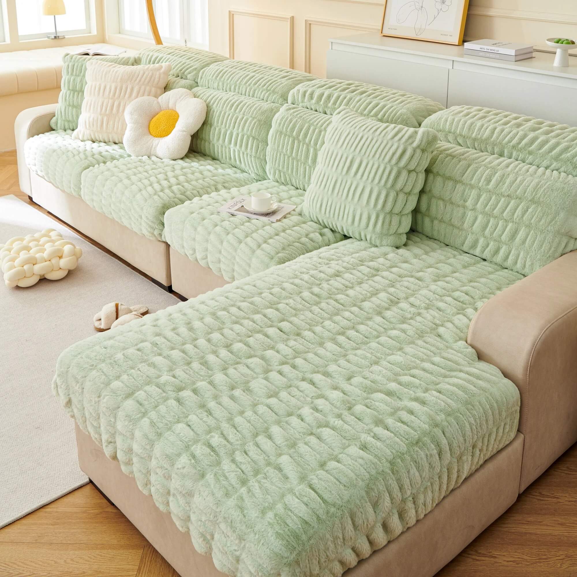 Pluszowy pokrowiec na siedzisko narożnika - kanapy - Naturalist Grey