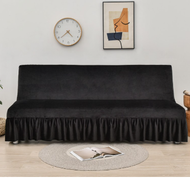 Welurowy pokrowiec na wersalkę finkę z falbaną - CZARNY