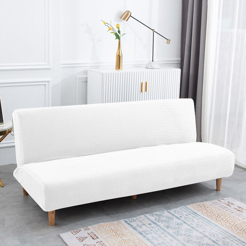 Żakardowy - wiklinowy pokrowiec na wersalkę finkę bez boków - BIAŁY