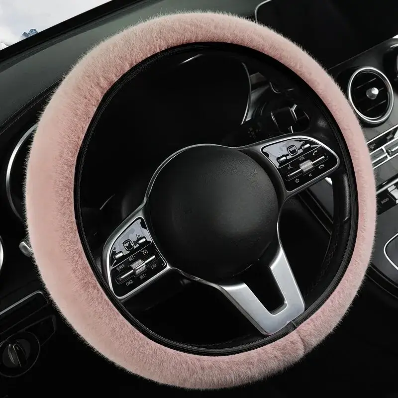 Pluszowy pokrowiec na kierownice - 38cm - Szary