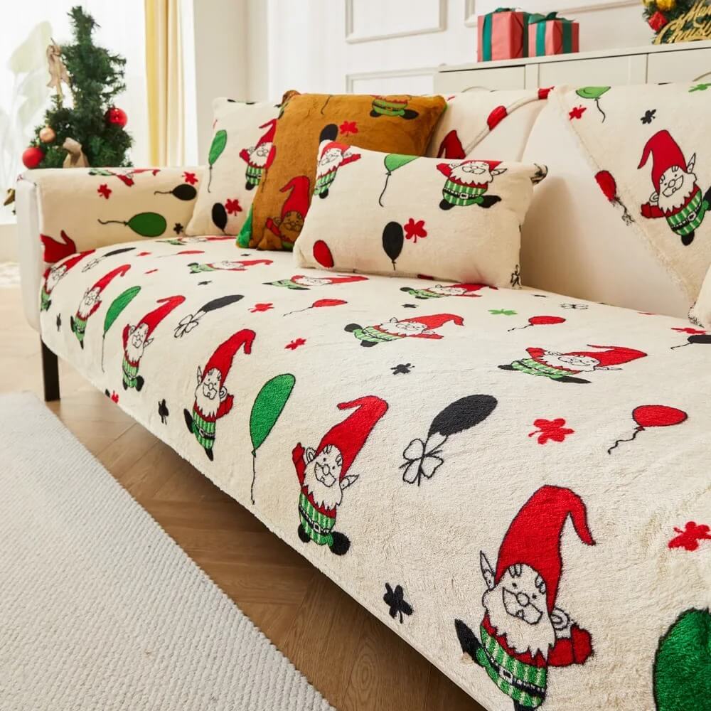 Świąteczna uniwersalna narzuta na narożnik - kanapę - fotel - Elf - Biały